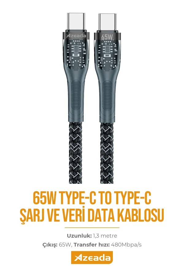 Azeada Type C to Type C Data Kablosu PD-B89a 65W Siyah